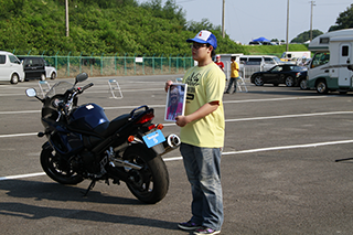 そして各マシンは駐車場へと戻ってきました。チームのご配慮でキャンギャルが出迎えてくれています。15分前後の時間ですが、ライダーも参加した身障者の方も充実したひと時を過ごす事が出来ました。