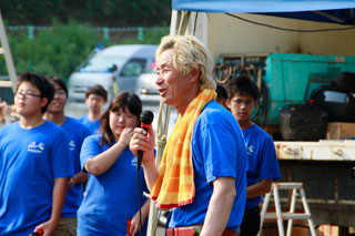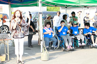 いよいよ、イベントが開始されます。まず、ボランティアで参加頂いている弥富高校の生徒有志による群舞が披露されます。今年も身障者の方も拍子木を鳴らして楽しんで頂きました。