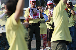 水谷先生への黙祷の後、愛知黎明高校の演舞が披露されました。遺影を前に生徒たちが精一杯元気よく踊っていました。その後、代表の水谷より開会の挨拶をさせて頂きました。