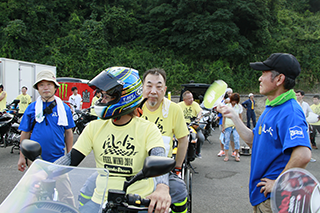 ライブが終了し、いよいよ乗車開始です。JCのメンバーをはじめ、ボランティアが、各バイクの乗車セッティングを行っていきます。愛知黎明高校の生徒などが、ライダー・身障者の方々におしぼりなどのサポートを懸命に行っていきます。