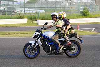 そして各マシンは駐車場へと戻ってきました。チームのご配慮でキャンギャルが出迎えてくれています。15分前後の時間ですが、ライダーも参加した身障者の方も充実したひと時を過ごす事が出来ました。