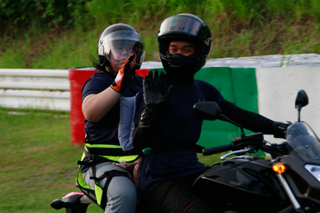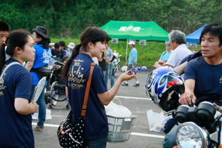 そして各マシンは駐車場へと戻ってきました。チームのご配慮でキャンギャルが出迎えてくれています。15分前後の時間ですが、ライダーも参加した身障者の方も充実したひと時を過ごす事が出来ました。