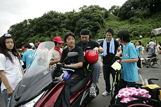 約10分程度で1周し、元のイベントスペースに戻ってきます。身障者の方々には笑顔が溢れていました。最後に記念撮影を行い、今年の「風を感じて…」のイベントは終了しました。