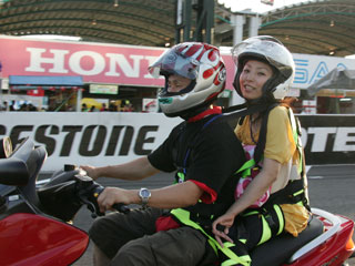 本年はライダーも、元HRCの副社長も参加頂くという豪華メンバーでのライディングとなりました。18:00前、コ-ス上に移動し、整列後スタート。サーキットコースを1周し、無事戻ってきました。特に今年は、昨年以上に熱い中での乗車で、ライダーも身障者の方も大変だったと思いますが、鈴鹿サーキットのコースをバイクで駆け抜ける時に感じる「風」がとても心地よかったのではないかと思います。