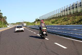 17時50分。いよいよコースインです。西コースのピットレーンに整列し、スタートします。今年は1周とのお話をお聞きしておりましたが、2周走らせて頂きました。